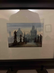 Framed Watercolor Landscape of Charles Bridge, Prague