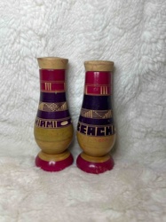 Vintage Sgraffito Wood Miami Beach Souvenir Salt and Pepper Shakers