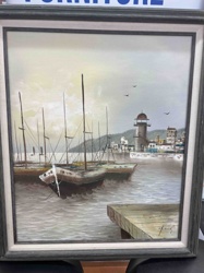 Harbor Scene Oil or Acrylic Painting by K. Bell