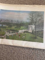 Signed Landscape Lithograph Print of Figural Archery or Croquet Scene