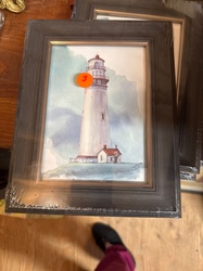 Framed Coastal Lighthouse Print with Whimsical Elements