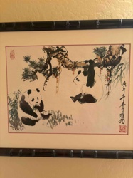 Framed Chinese Ink Wash Panda Painting