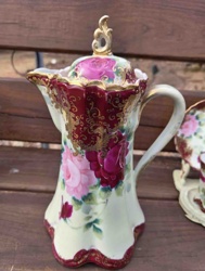 Porcelain Hand-Painted Chocolate Pot Set with Six Demitasse Cups