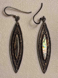 Vintage Sterling Silver and Inlaid Shell Navette Drop Earrings