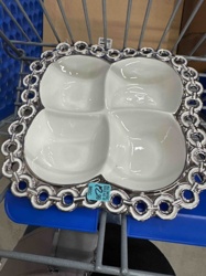 Four-Compartment Ceramic Relish Server with Metallic Silver Interlocking Chain Border