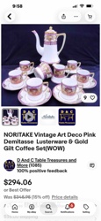 Vintage Noritake Art Deco Pink Lusterware and Gold Gilt Demitasse Coffee Set