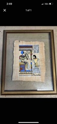 Framed Egyptian Papyrus Artwork: Akhenaten and Nefertiti