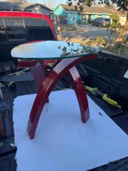 Modern Glass-Top Sculptural End Table with Red X-Base