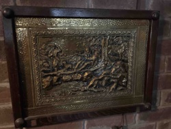 Dutch Relief Pressed Brass Repoussé Wall Plaque in Wood Frame