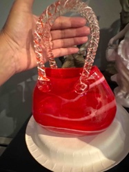Murano Style Hand-Blown Red Art Glass Purse Vase