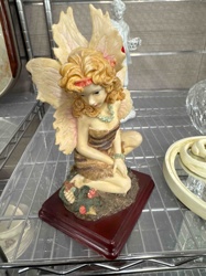 Kneeling Fairy Figurine on Wooden Base
