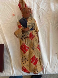 Vintage African Cloth Folk Art Doll with Woven Basket
