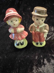 Vintage Ceramic Caroling Boy and Girl Salt and Pepper Shakers