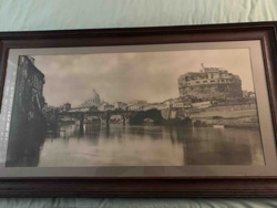 Vintage Sepia-Toned Photograph of Castel Sant'Angelo and the Tiber River in Rome