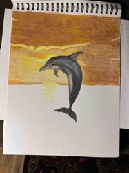 Colored Pencil Drawing of a Jumping Dolphin in a Sketchbook