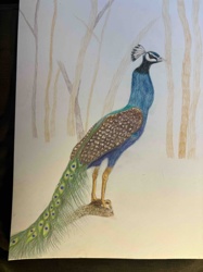 Colored Pencil and Watercolor Drawing of a Peacock