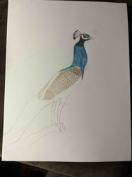 Incomplete Colored Pencil Drawing of a Peacock