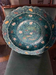 Large Kangxi-Style Turqoise-Ground Famille Verte Scalloped Charger