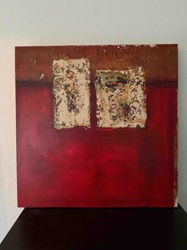 Contemporary Abstract Expressionist Mixed Media Painting with Red Chop Seal