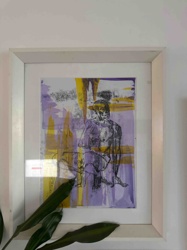 Framed Contemporary Art with Butterfly and Pink Abstract Elements