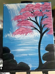 Contemporary Cherry Blossom and Waterfall Landscape