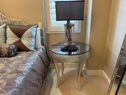 Contemporary Silver-Leaf Circular Bedside Table