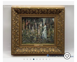 Framed Impressionist-Style Tapestry or Print of a Woman in a Flower Garden