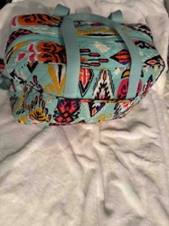 Vera Bradley Quilted Cotton Duffel Bag in 'Ikat Diamonds Teal' Pattern
