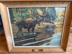 Vintage Framed Moose Print by Al Agnew from the Searsman Collection