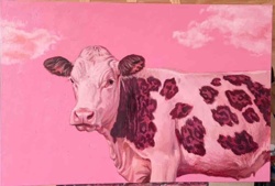 Pink Leopard-Spotted Cow Oil Painting by Naska Anastasia Gladkova