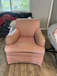 Upholstered Pink and Cream Striped Club Chair
