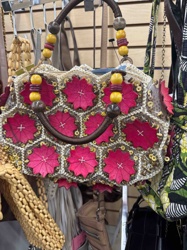 Floral Patchwork Crochet and Wood Bead Handbag