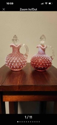 Pair of Fenton Hobnail Pink Opalescent Glass Cruets