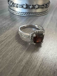 Cushion-Cut Garnet and Diamond Halo Setting Ring