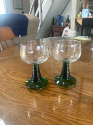Set of 11 Etched Glass Cordial/Wine Glasses