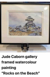 Framed Watercolor Painting 'Rocks on the Beach' by Jude Caborn