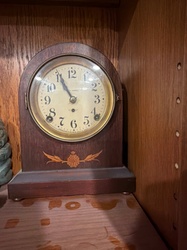Seth Thomas Mahogany Tambour Mantel Clock with Marquetry Inlay