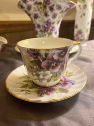 Violet Floral Teacup and Saucer Set