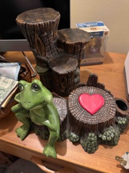 Frog and Tiered Tree Stump Ceramic Figurine