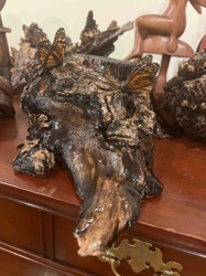 Mixed Media Burl Wood and Monarch Butterfly Sculpture