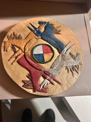 Polychrome Hand-Carved Wooden Horse Medicine Wheel Relief Sculpture