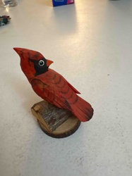 Hand-Carved and Painted Wooden Northern Cardinal Figurine