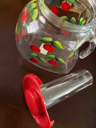 Hand-Painted Cherry Glass Pitcher with Red Lid