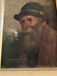 Tyrolean Bearded Man with Pipe Oil Portrait