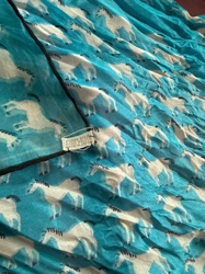 Vintage Japanese Hand-Rolled Silk Scarf with Horse Print