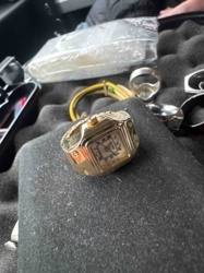 Gold-Tone Cartier Santos-Style Ring Watch