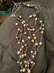 Multi-Strand Suede and Baroque Pearl Necklace with Magnetic Clasp