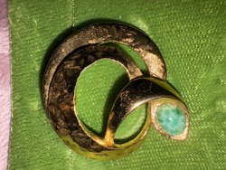 Vintage Gold-Tone Textured Spiral Brooch with Faux Turquoise Cabochon