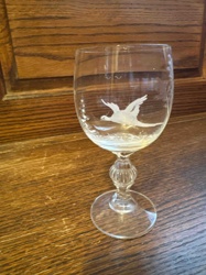 Vintage Etched Crystal Wine Goblet with Flying Pheasant Motif