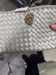 Tory Burch Metallic Woven Leather Clutch / Cosmetic Pouch